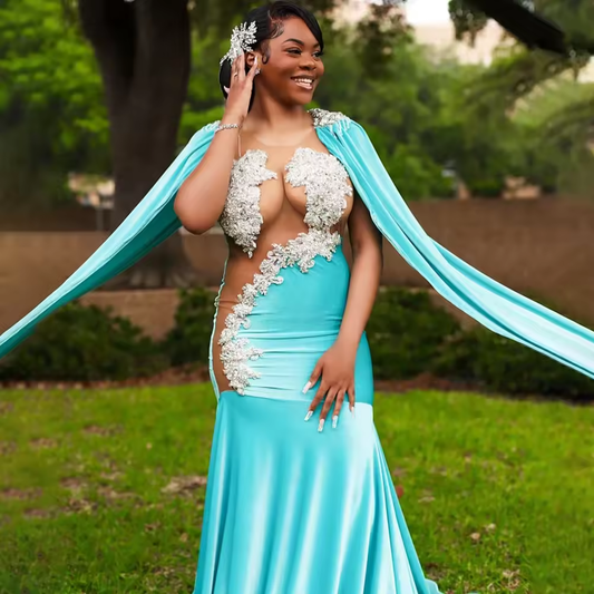 2025 Sexy Long Mermaid Prom Dresses For Black Girls Sheer Applique African Women Birthday Party Evening Gown Customsized