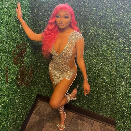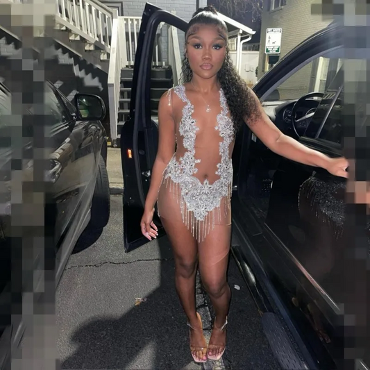 Sexy See Through Prom Dresses Rhinestone Sheer Mini Birthday Dress Outfits Party Gowns Vestidos De Graduación Homecoming Wear