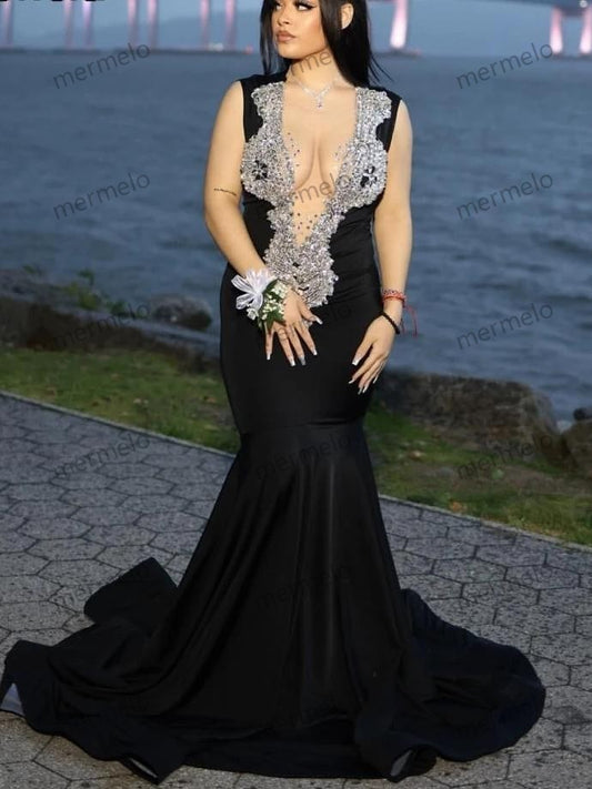 Blackgirls Crystal Mermaid Elegant Dress For Wedding Party Evening