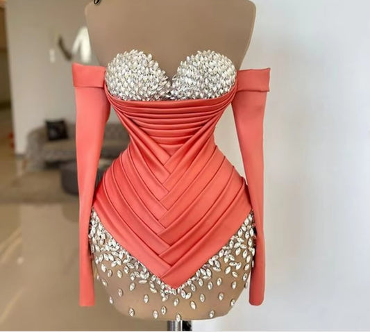 Shiny Glamorous Evening Dresses Sweetheart Strapless Crystals Bodycon Vestidos Elegantes Para Mujeres Custom Made