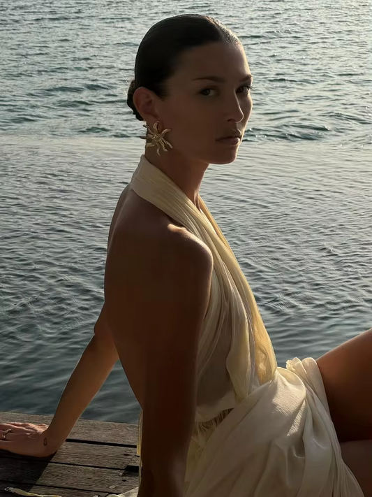Women Sexy Gauze Backless Halter Pleated Cropped Tank Tops Suits Chic Splited Elastic Waist Long Skirts 2 Pcs Sets Lady Outfits