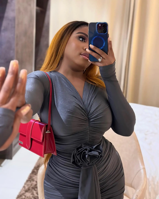Elegant Gray Stretch Taffeta Midi Prom Dresses Sexy Sheath Pleated Tea Length Formal Occasion Dress Black Girls Evening Gowns