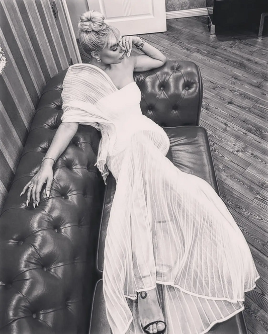 Fashion White Pleated Long Prom Dresses with 3D Pleated Shoulder Couture Mermaid Evening Party Dress