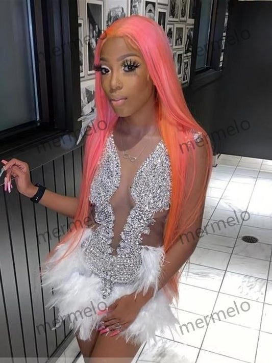 Glitter Diamonds Short Prom Dresses Sheer Mesh Sexy Sparkly Beads Rhinestone Crystal Feathers Cocktail Party Gowns Robe De Bal