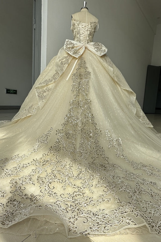 Glamorous Gold Sweetheart Ball Gown with Cape Sleeves