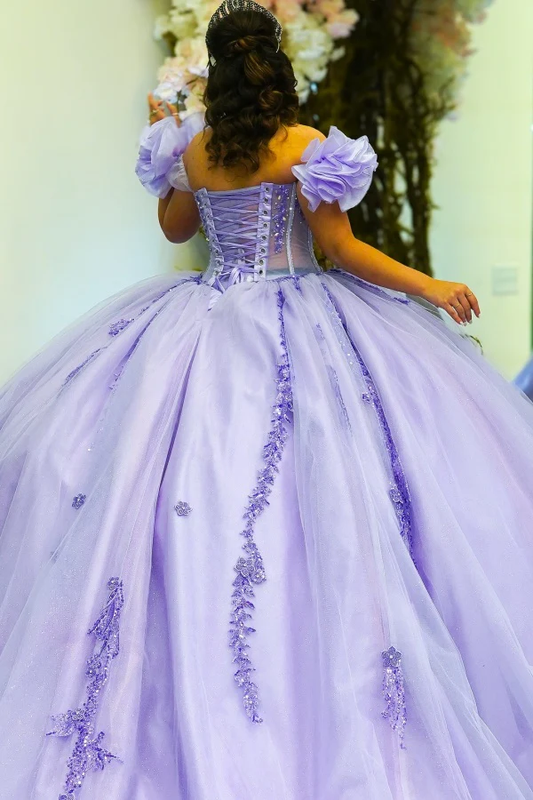 Off Shoulder Tulle Appliqued Beaded Lilac Quinceanera Dresses for Sweet 16