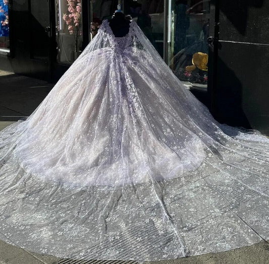 Light Purple Mexican Quinceanera Dressess with Cape Luxury Butterfly Applique vestido 15 quinceañeras Corset Prom Lace Up