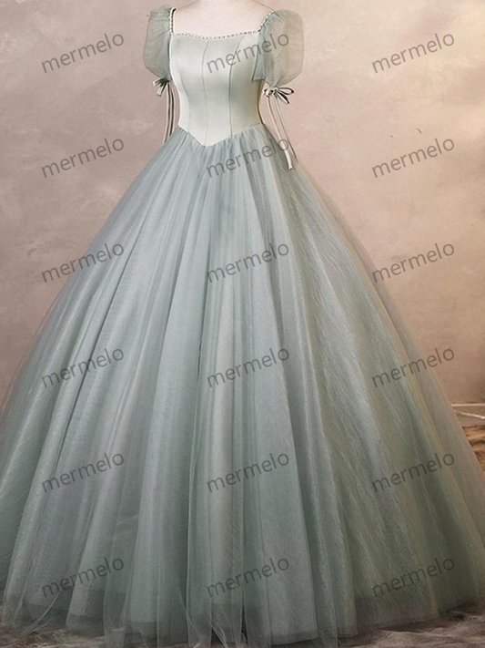 French Puffy Sleeve Tulle Prom Dress, Cocktail Party Dress, Prom Dress, Evening Party Dress, Long Ball Gown, Graduation Dress, Party Gown