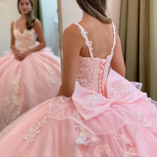 Princess Pink Ball Gown 15 Year Old Quinceanera Dresses 2025 Spaghetti Straps vestidos de xv años Girls Party Dress