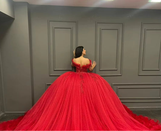 Mexico Red Off The Shoulder Quinceanera Dresses Ball Gown Bead Appliques 2024 Birthday Luxury Dress Ruffles Graduation Gown