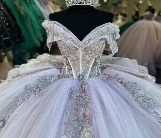 Mexican Lavender Quinceanera Dresses Ball Gown Beaded Lace Appliques Bow Sweet 16 Dress Princess Lace Up Vestido De 15 Anos