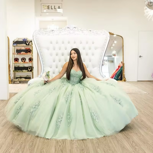 Sparkling Sage Green Lace Up Ball Gown Quinceanera Dresses 2025 With Appliques Mexico Brithday Party Vestidos De 15 Quinceañera