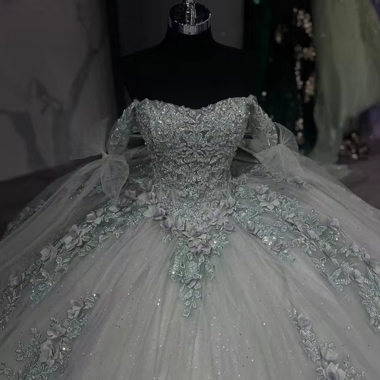Sage Green Quinceanera Dresses With Bow 3D Flowers Beading Appliques Vestidos De 15 Anos Birthday Party Princess