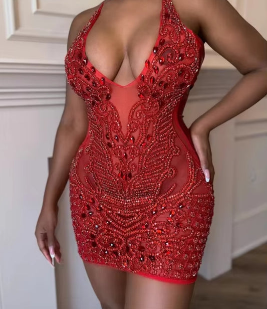 Chic Hot Pink Diamonds Prom Dress Halter Crystals Rhinestone Beads Birthday Party African Cocktail Homecoming Gowns