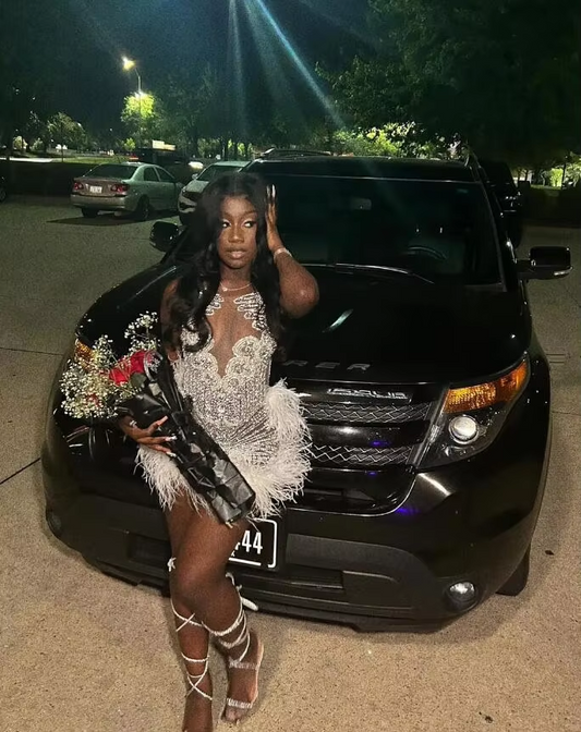 Little White Dress Sparkly Diamond Short Prom Homecoming Dress for Black Girl Luxury Crystal Feather vestidos de gala 2025