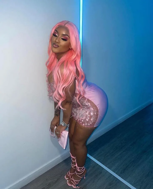 Pink Luxury Crystal Feather Birthday Homecoming Gown