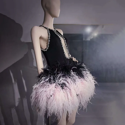 Luxury Crystals Beading Short Prom Dresses Pink Halter Feathers Mini Cocktail Dress vestidos de gala mujer Gala Event Party Gown