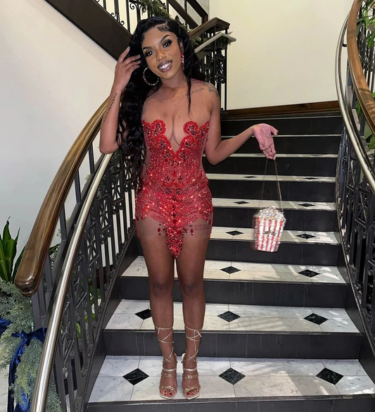 Luxury Sparky Short Prom Homecoming Dresses Diamond Crystal Tassel Black Girl Birthday Queen Gown vestidos de graduación