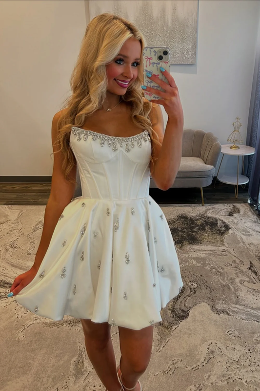 A-Line Boat Neck Beaded Crystal Homecoming Dress Evening Party Dress