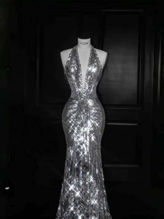 Gorgeous Mermaid Halter Sequin Long Prom Dress Party Dress Graduation Dresses