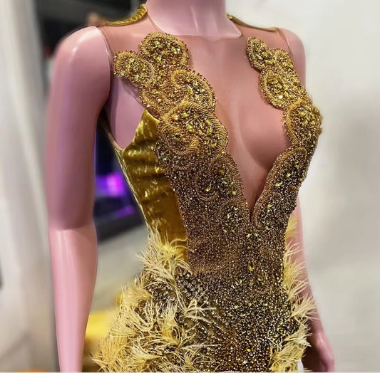 Gold Prom Dresses Black Girls Short Beaded Rhinestone Diamond Evening Luxury Dress Birthday Party Dress Mini Cocktail Customized