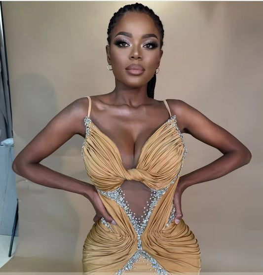 Champagne Sexy Prom Evening Dresses 2025 Gowns Bead Crystal Long Prom Dress With Birthday Party Dresses African Customized