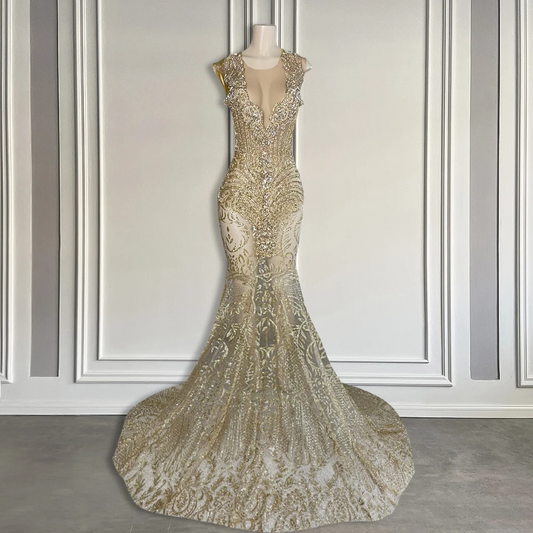 Sparkly Golden Sequin Long Prom Dresses for Black Girl Luxury Crystal Beaded Mermaid Prom Dress Gold