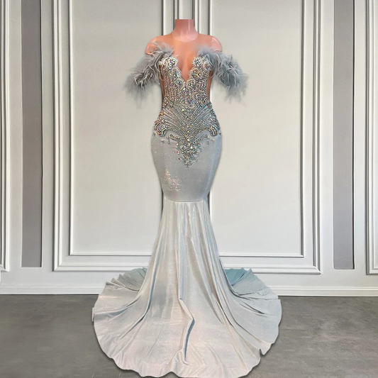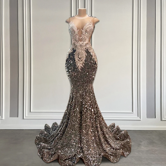 Long Silver Fitted Prom Gowns For Black Girls Luxury Crystal Beaded Mermaid Sparkly Sequin Prom Dresses