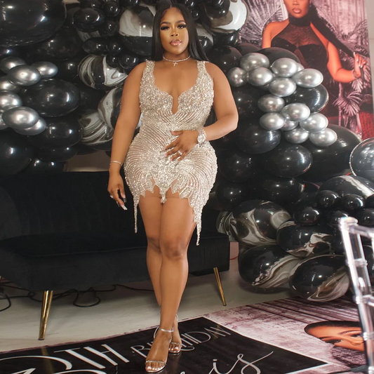 Luxury Mini Evening Cocktail Dress for Women Sparkly Diamond Crystla Sheer Mesh Black Girl Birthday Gown vestidos de gala