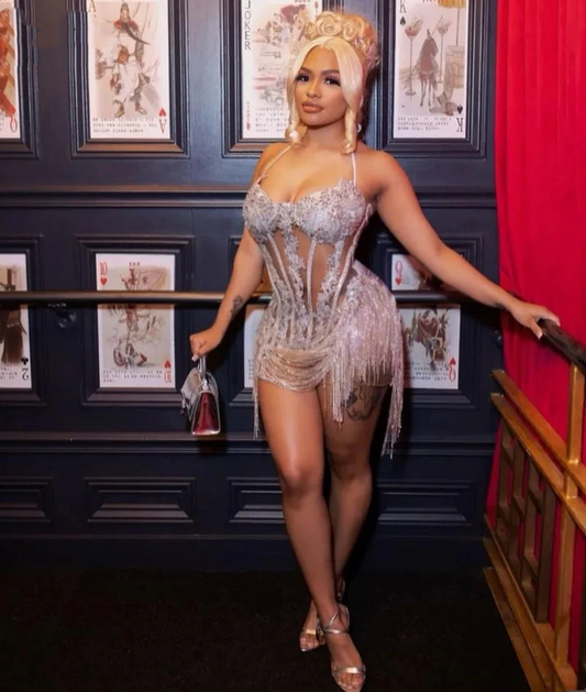 Sexy Short Prom Dresses For Black Girl Beads Crystal See-Thru Mesh Birthday Party Gowns Cocktail Prom Gowns Robe De Bal