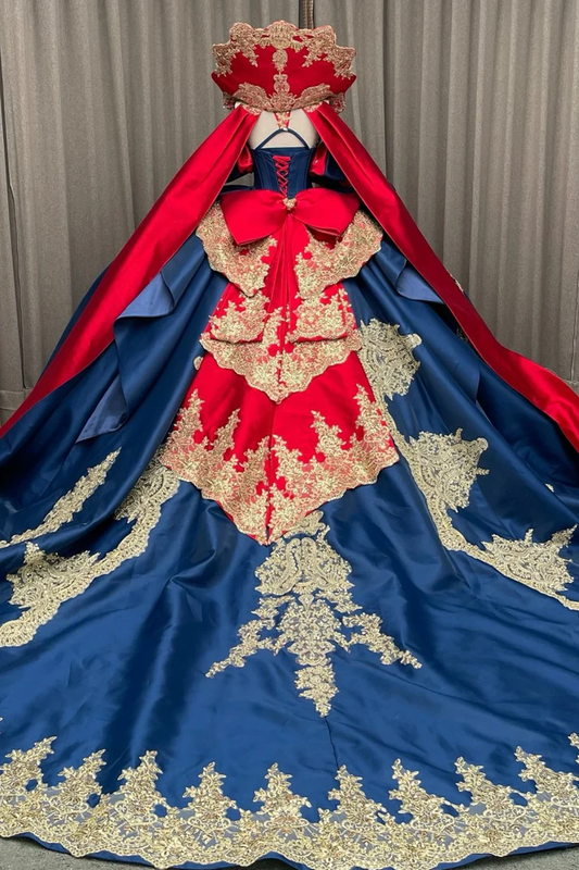 Sweetheart Neck Straps Sleeveless Beaded Appliques Bow Knot Royal Blue Sweet 15 Quinceañera Dress