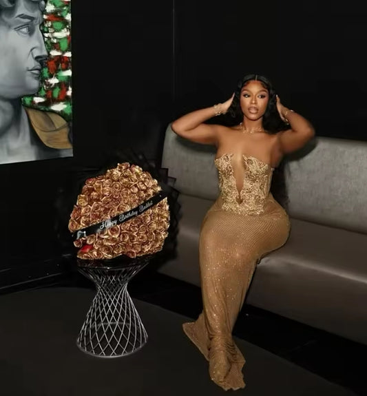 Customized Gold Evening Dress Crystals Beading Crystal Prom Gowns Bridal Wedding Party Dress Vestidos De Novia