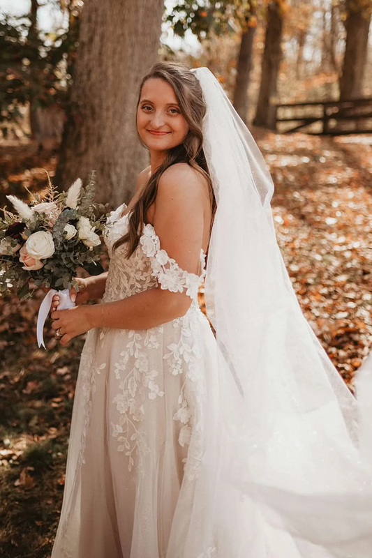 Boho Lace Wedding Dresses for Bride A Line Tulle Appliqued Beach Wedding Gowns