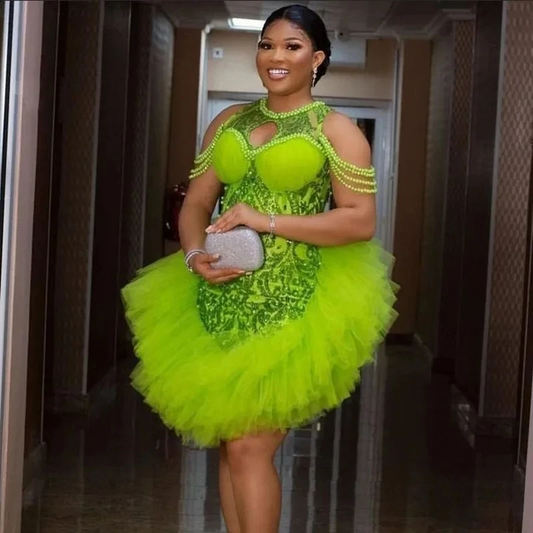 Short Evening Dresses Off The Shoulder Beading Ruffle Tulle Sequins Lace Women Stuning Prom Gowns Wedding