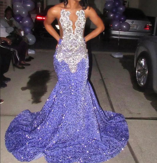 Sparkly Lavender Purple Long Prom Dress Beads Crystals Rhienstones Sequins Glitter Birthday Party Wedding Reception Robe