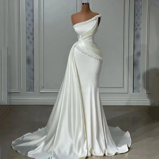 Simple sexy off-the-shoulder mermaid wrap buttocks elegant lady wedding dress party Formal romantic bridal party wedding