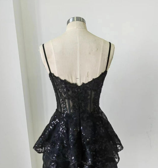 Black Lace Homecoming Dress Girl Dress Wedding Receiption Dress Sweetheart Neckline HOCO Dress Short Prom Dress Short Formal Party Dress