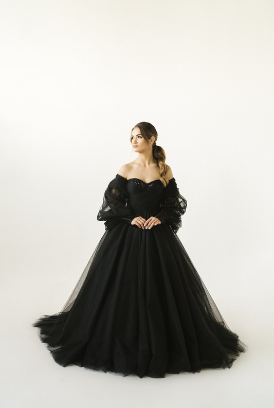 Black Wedding Dress,Off Shoulder Corset Dress, BLack Bridal Gown, Elegant Evevning Dress, Engagement Wedding Dress, Eloping Bridal Gown