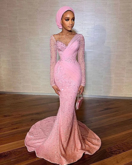 Pink wedding dress,African fully beaded women clothing dress,Prom dress, Birthday,Evening dress,Party ball dress,Wedding guest,Red Carpet dr