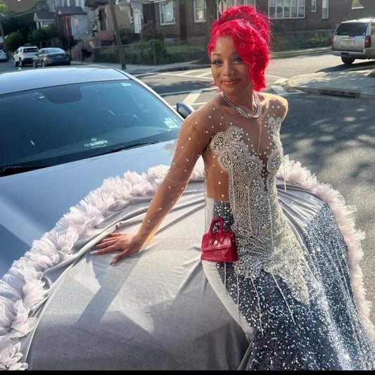 Long Fitted Prom Dresses, Homecoming Dress, Wedding Dress, Black Girl Dress, Reception Dress, Gift For Her, Mermaid Dress, Rhinestone Dress.