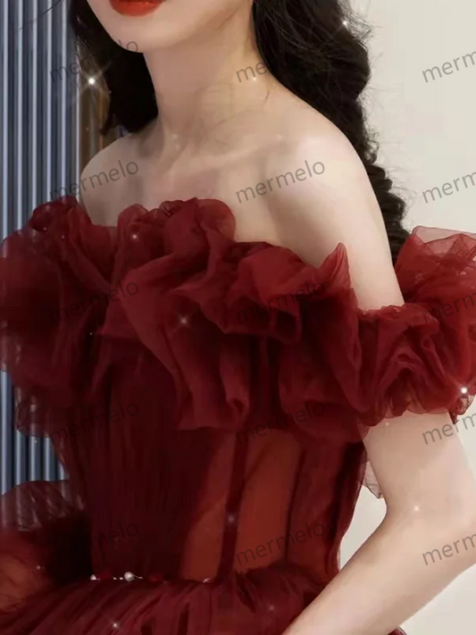 Wine Off Shoulder Sweat Lady Girl Women Princess Bridesmaid Banquet Party Ball Prom Dress Gown Fashion Celebrity Dresses