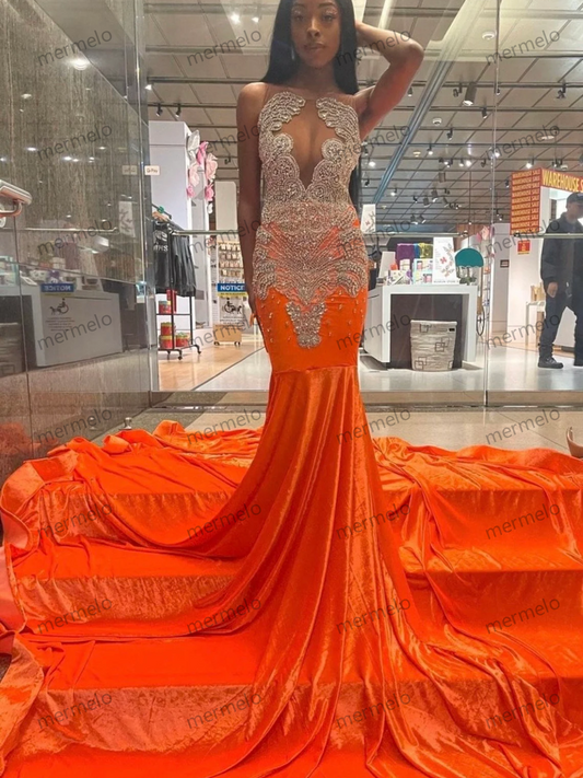 Orange long prom dress, sequins mermaid dress, wedding dress, party dress ,photo shoot dress, bridal dress