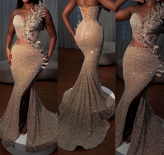 Gold lace dress, Corset dress, Prom dress, Pageant dress Homecoming dress, Wedding reception gown, Birthday gown, Party Aline gown with slit
