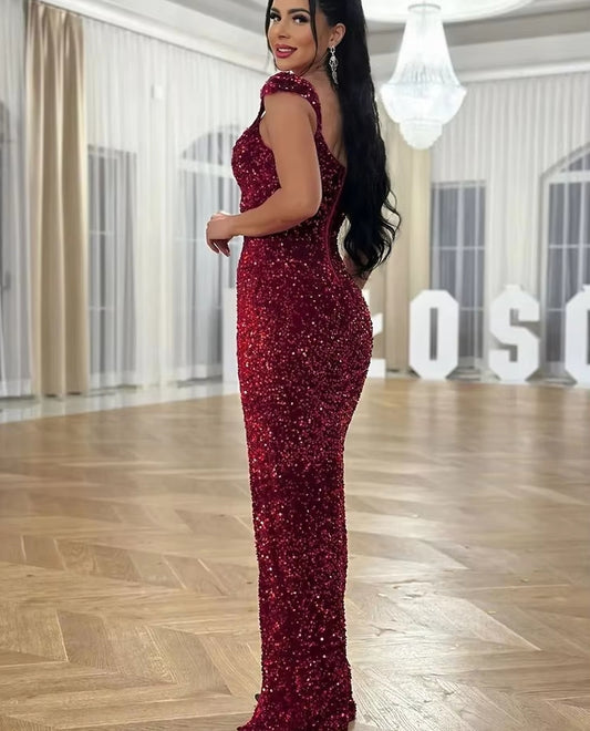 Evening Wedding Luxury Women Sexy Strap Sleeveless Sequins High Split Elegant Long Dresses Birthday Party Gown Christmas