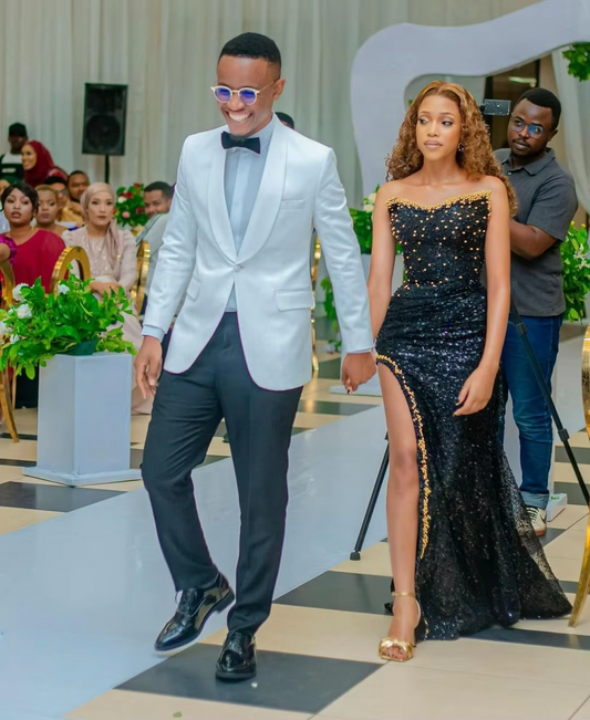 Black Sexy Prom Dresses Strapless High Slit Women Evening Formal Dress Custom Made Mermaid Wedding Party Gowns