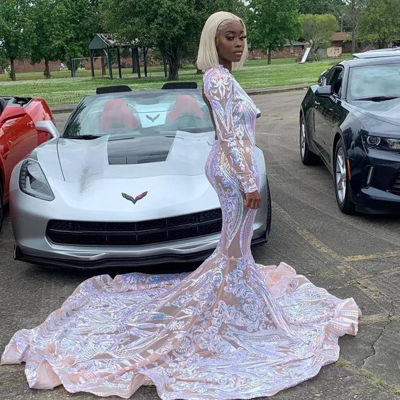 Sparkly Sexy Lace Prom Dresses Long Sleeves Birthday Party Wear