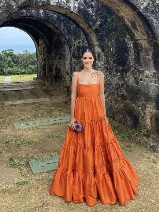 A line orange long prom dress, fashion evening dress