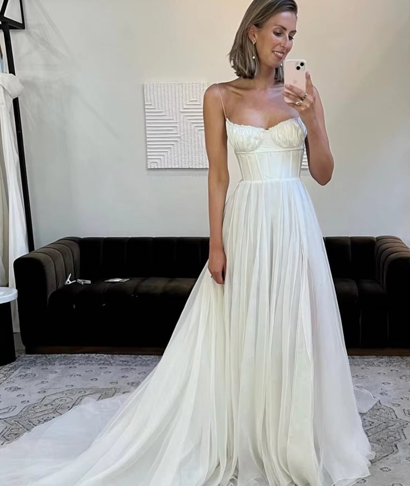 A Line Organza Wedding Dresses For Bride Spaghetti Straps Bones Formal Party Dress Wedding Bridal Gowns robe de mariée