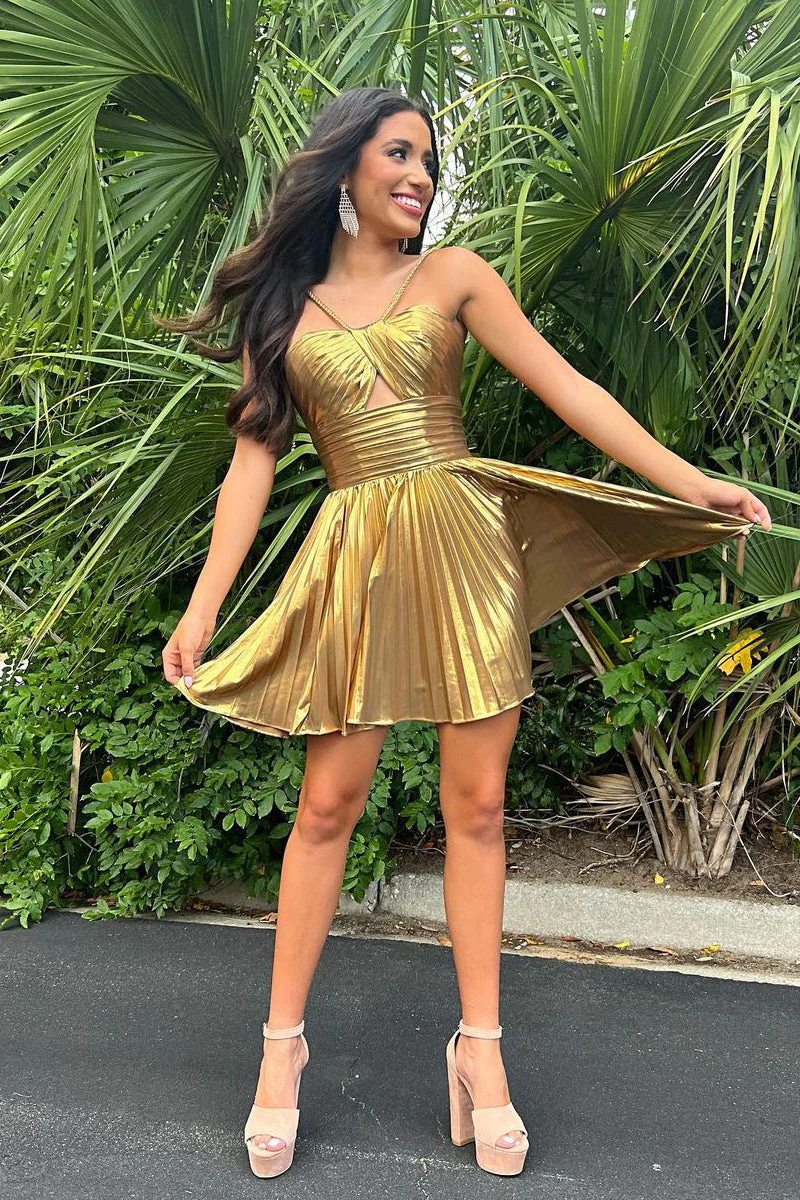 A-Line Spaghetti Straps Keyhole Purple Pleated Homecoming Dresses