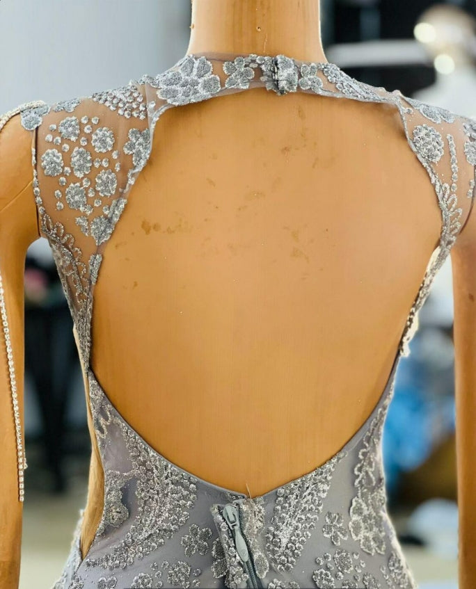 African prom queen dress, silver blue mermaid prom dress, luxury homecoming dress, bridesmaid evening dress, photo shoot & dinner party gown